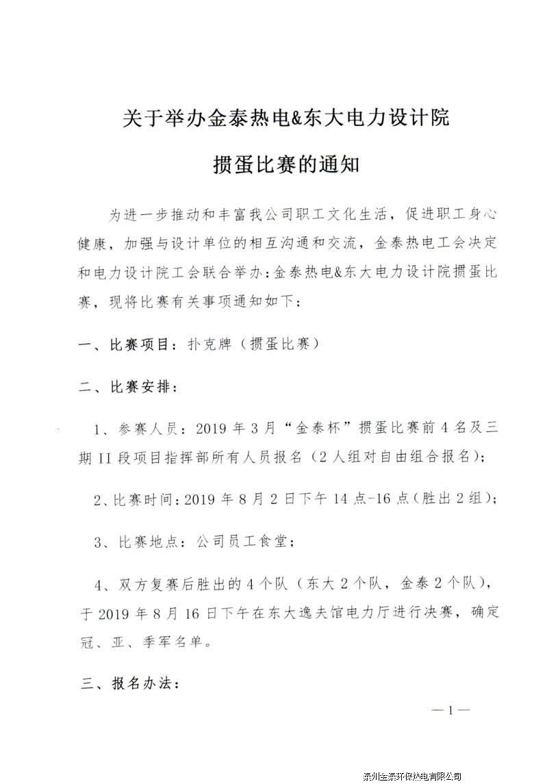 金泰热电工会东大电力设计院掼蛋比赛通知
