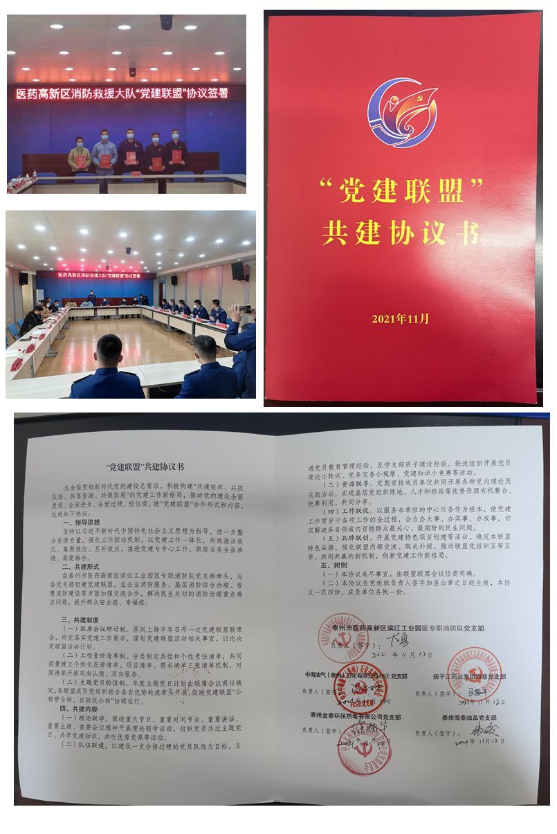 11月12日,我公司党支部书记徐振华应邀参加了高新区(高港区)消防救援大队开展“火焰蓝映党旗红” 党建联盟工作,并签订了《“党建联盟”共建协议书》。