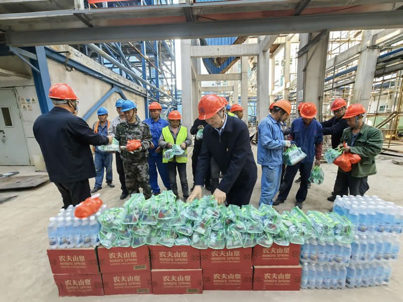两位书记等逐一把慰问物资发放到施工人员的手中,并亲切与大家交谈,关心和询问大家的生活情况,叮嘱他们一定要抓好安全环保施工,更要保重好自己的身体,以更健康的状态全力以赴技改项目。