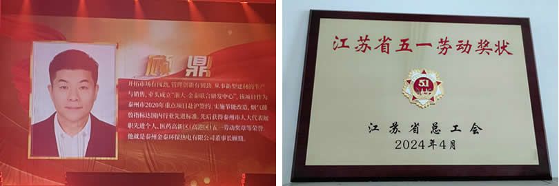 ---热烈祝贺明博网页版在线登录喜获“江苏省五一劳动奖状”、董事长顾鼎喜获“泰州市劳动模范”荣誉称号